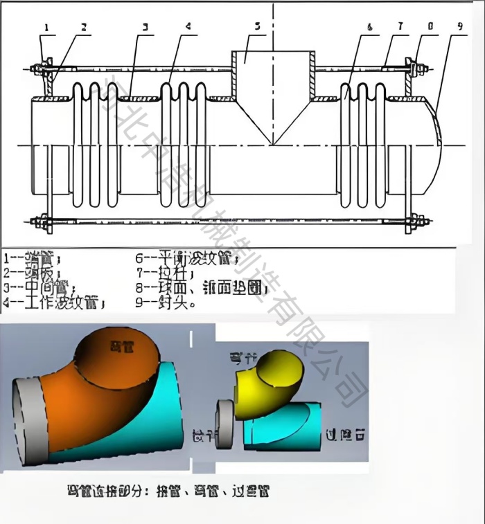 一、曲管壓力平衡波紋補償器結構與組成: