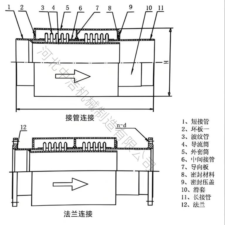 法蘭式外壓直埋蒸汽伸縮節(jié),主要用于管道軸向補償,吸收較大軸向位移,同時具有較強抗彎能力,尤其適合直埋敷設管道系統(tǒng)中,且能在保護外殼和導向套筒作用下實現(xiàn)自由伸縮。主要結構波紋部分可選用單層、雙層、多層U型波設計,波紋管兩端通常與外管和通管相連,確使 法蘭式外壓直埋蒸汽伸縮節(jié)穩(wěn)定與可靠性,還配有法蘭方便拆卸,保護外殼和導向套筒避免介質直接磨損,延長使用壽命。