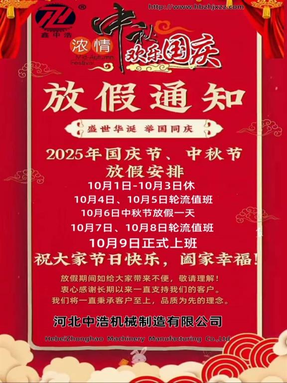 濃情中秋 歡樂國慶 放假通知-河北中浩機械制造有限公司
